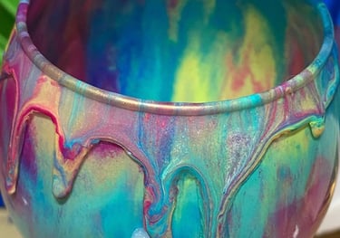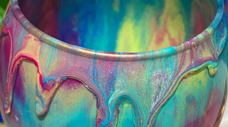 teal and pink artwork