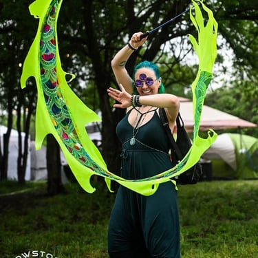 During this journey, I intuitively leaned into my art to heal and keep my idle hands busy. One of the skills I perform with, called Flow Arts (dance, hula hooping, silk fans, dragon flow, and others), is incredibly healing for the nervous system. At the time, I thought nothing of it—I just knew it felt right and was better than bed rotting; but deciding to livestream in order to have a schedule and some sort of pressure to get up and make art, along with leaning into flow arts, was one of many things that absolutely saved my life.