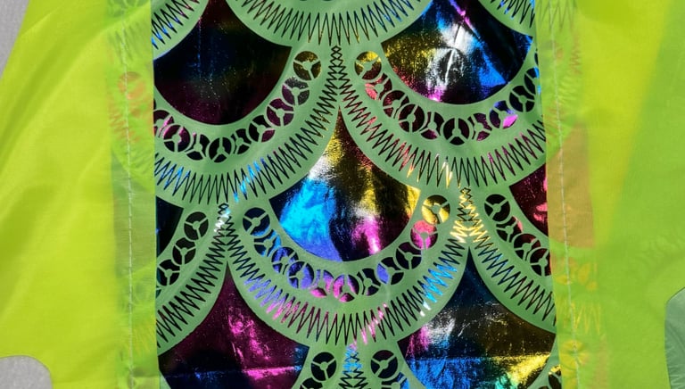 The holographic printing is thin so that your dragon can fly! So take care with how you store & transport your dragon. Crinkling it up into a ball & shoving it into a backpack like math homework = bad. Folding the dragon in half, half again, half again and then rolling it up = GOOD. :)
